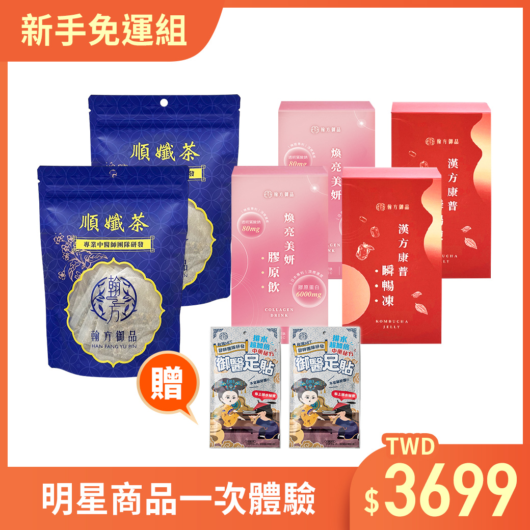 【新手免運組】瞬暢凍(2盒)+膠原飲(2盒)+順孅茶(2包)+贈 足貼(2包)