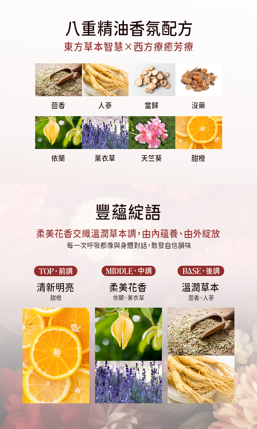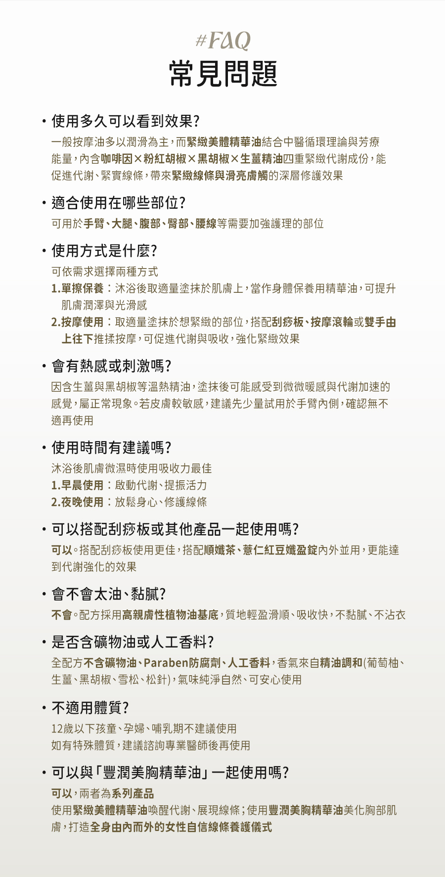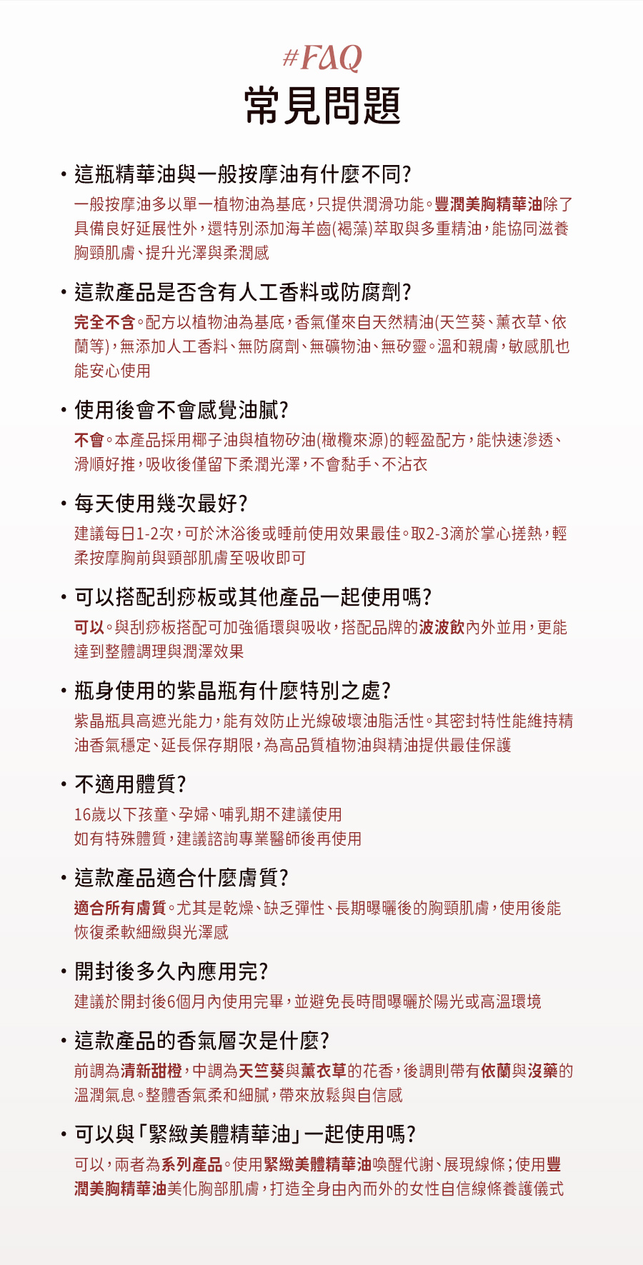 專業中醫團隊 × 國際香氛藝術協會 聯合開發 🔸中西合併|七重精油香氛 🔸溫和親膚|無礦物油、100%植物基底 🔸高穩定性|紫晶玻璃瓶 獨特濾光技術 🔸安心配方|無矽靈/人工香料/防腐劑 🔸搭配刮痧板按摩效果更顯著