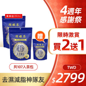 規格:順孅重量組50入2包+順孅茶7入1包 (茶包17克) = 共107入